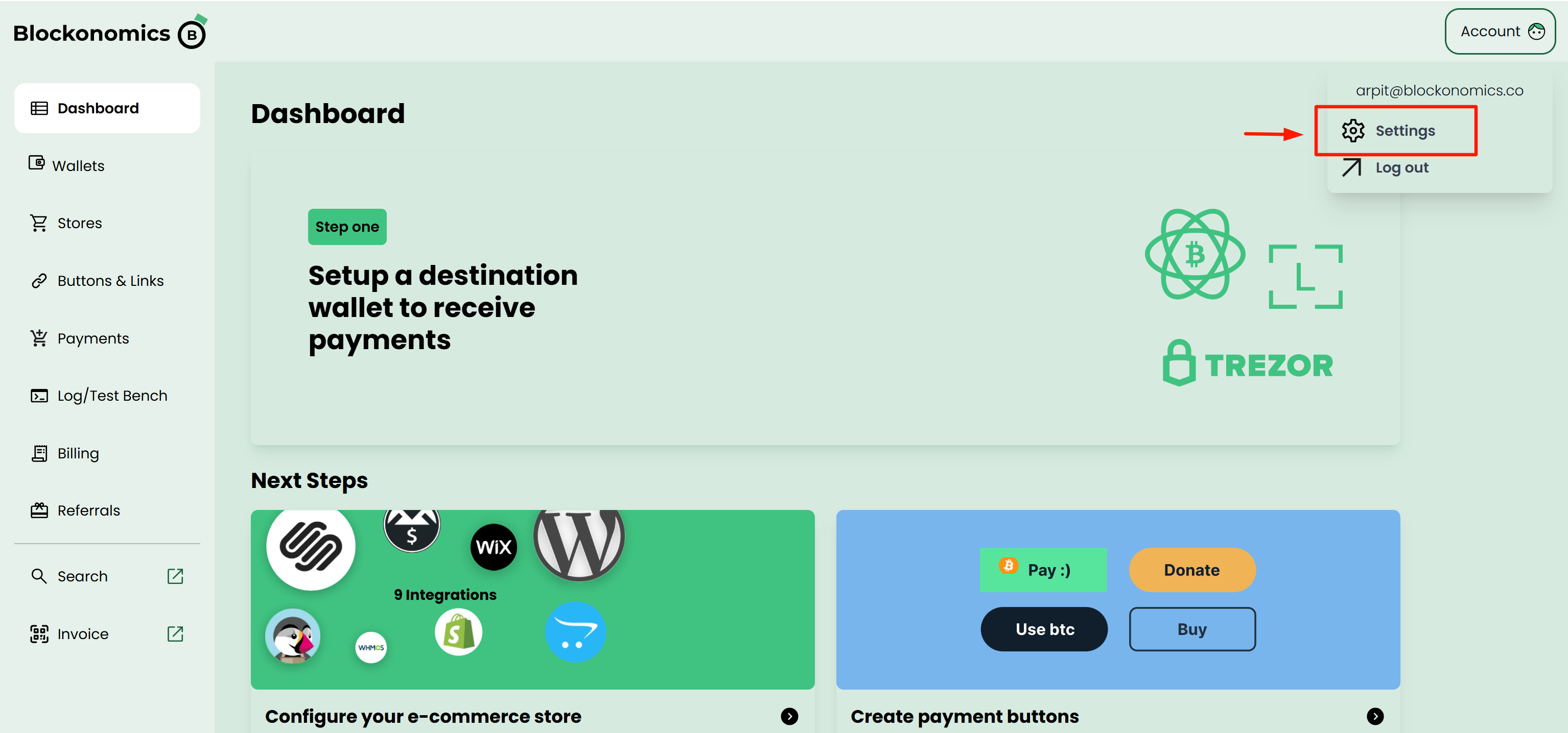 To enable 2FA authentication, log into your Blockonomics account and head over to your dashboard.